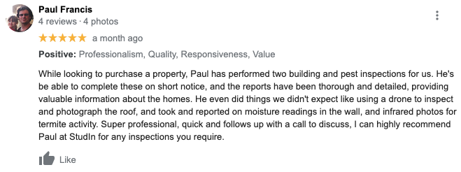 A building inspection report is different to a pest inspection report. While a building inspection report should identify any visual damage that may have been caused by termites, it usually won’t include details on existing termites or other timber destroying pests. Here in Queensland it is recommended to get a pest inspection report done before you buy a property, in addition to the building inspection.